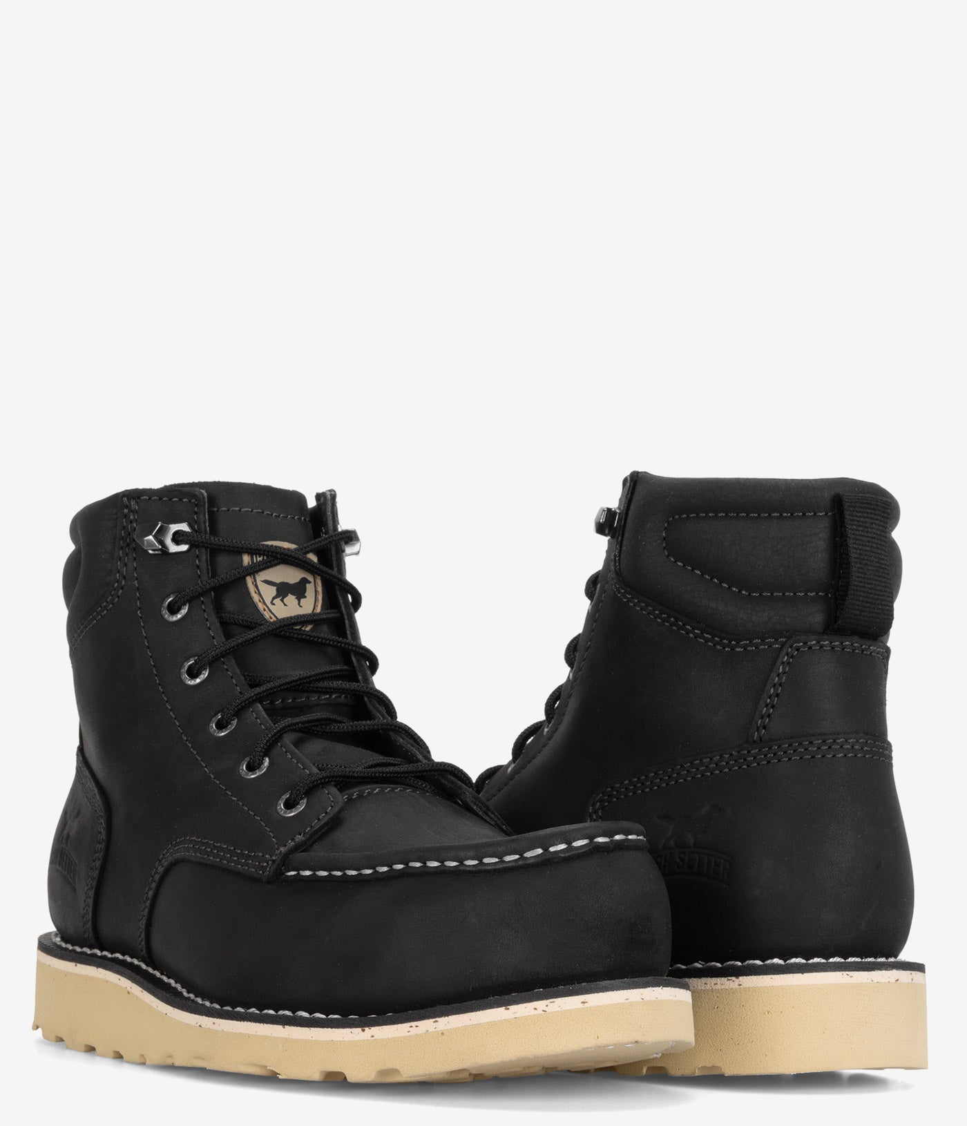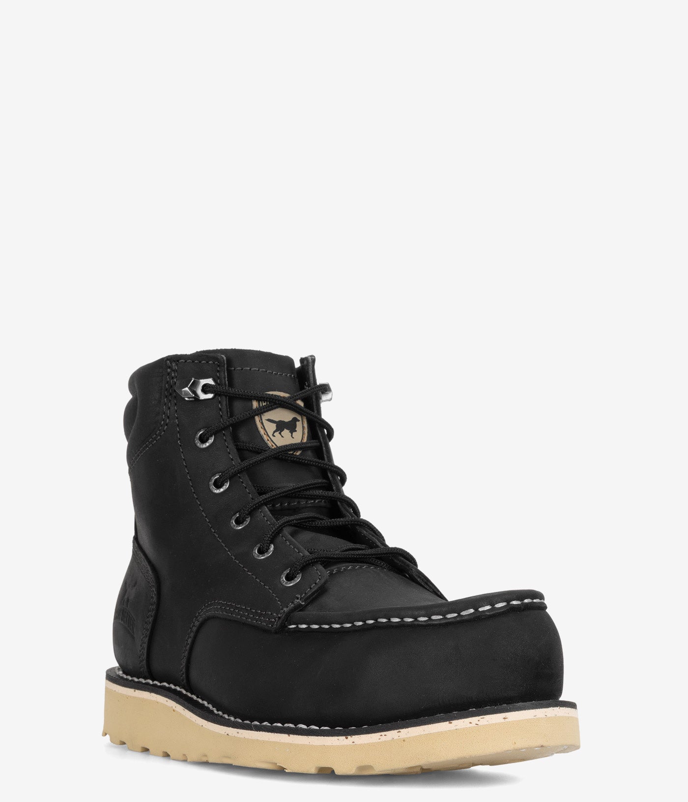 These moc-toe wedge work boots start with premium full-grain leather, shaped into a timeless moc profile that’s as practical as it is tough. Finished in a bold black colorway with sturdy lacing, a speed hook that locks in place, and triple stitching in high-wear zones, this steel safety toe work boot provides crucial impact and compression protection while delivering long-lasting comfort, durability, and value. And with old-school, resolable Goodyear welt construction backed by a slip-resistant, EH-rated polyurethane wedge sole that digs in when the floor gets slick or the weather turns, this boot keeps you moving with confidence through long weeks and long seasons.
