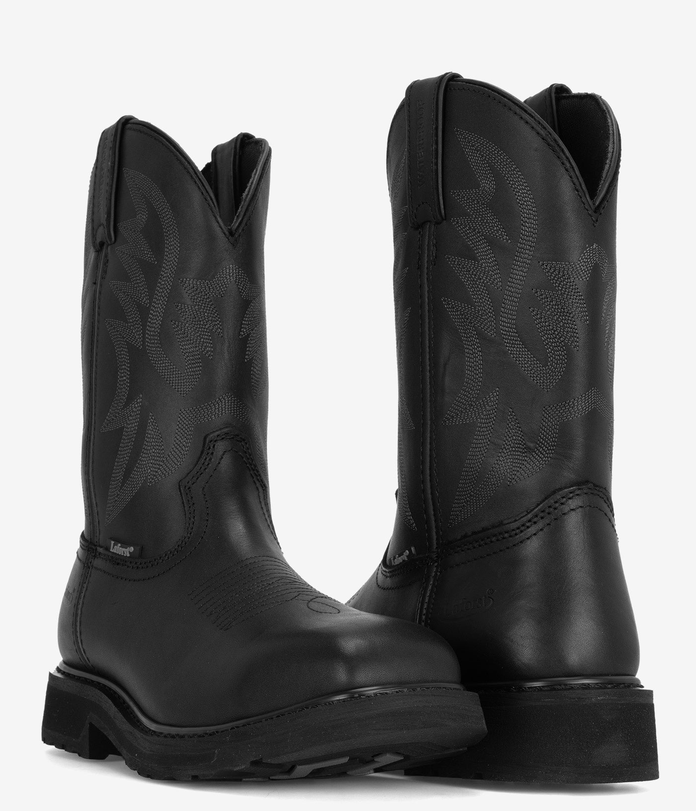 The Laforst Gaylord 9456 Composite Square Toe Waterproof PR Boots combine rugged performance with Western flair, delivering style and strength in equal measure. It's crafted for demanding environments while letting you work in style with a pull-on western boot design, featuring a water-resistant full-grain leather upper with traditional stitching and a square toe for style wrapped in one hardworking package.