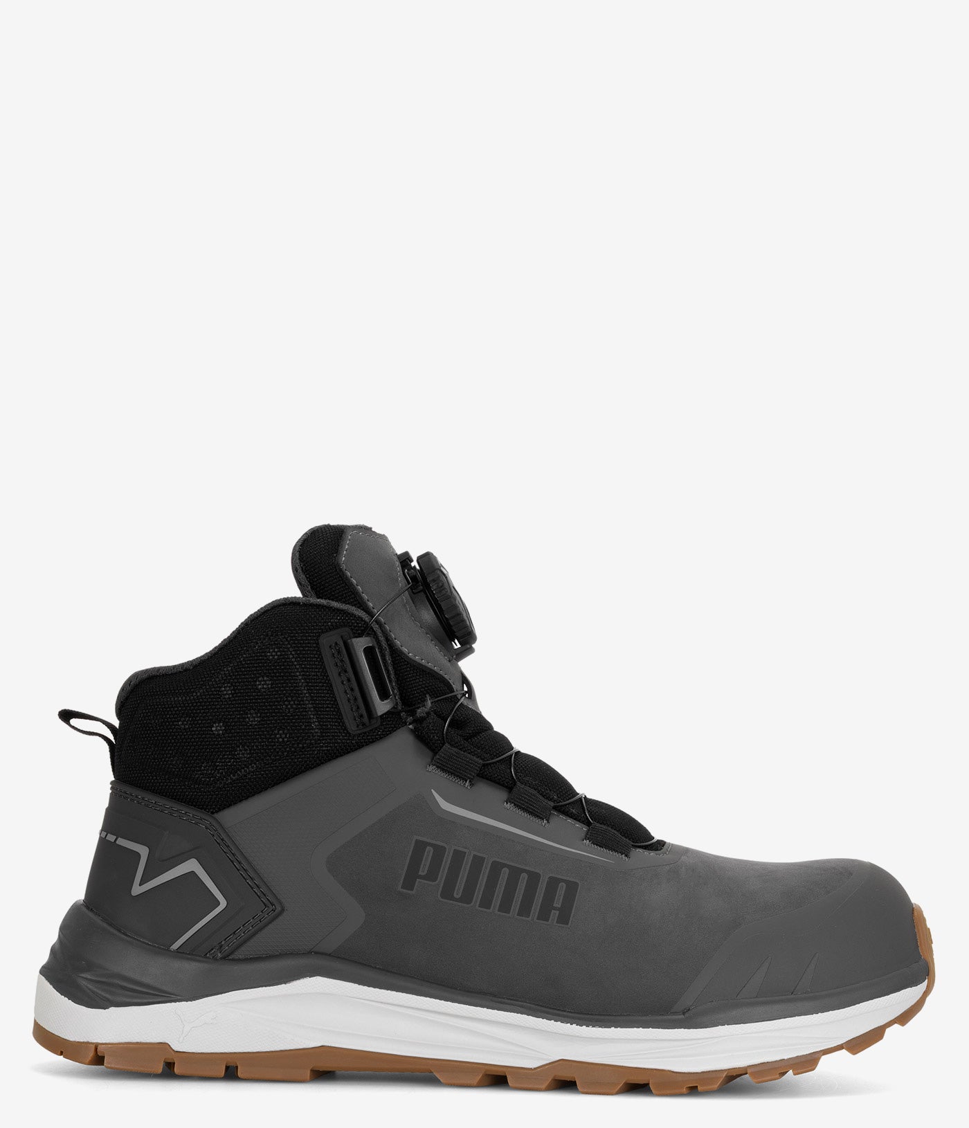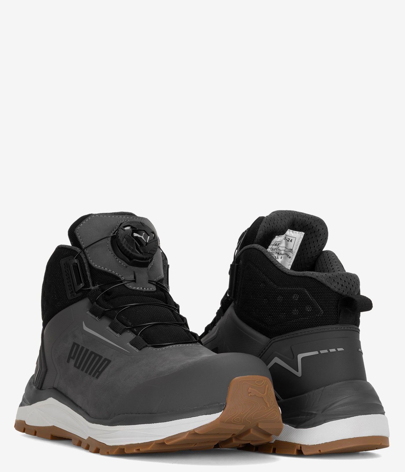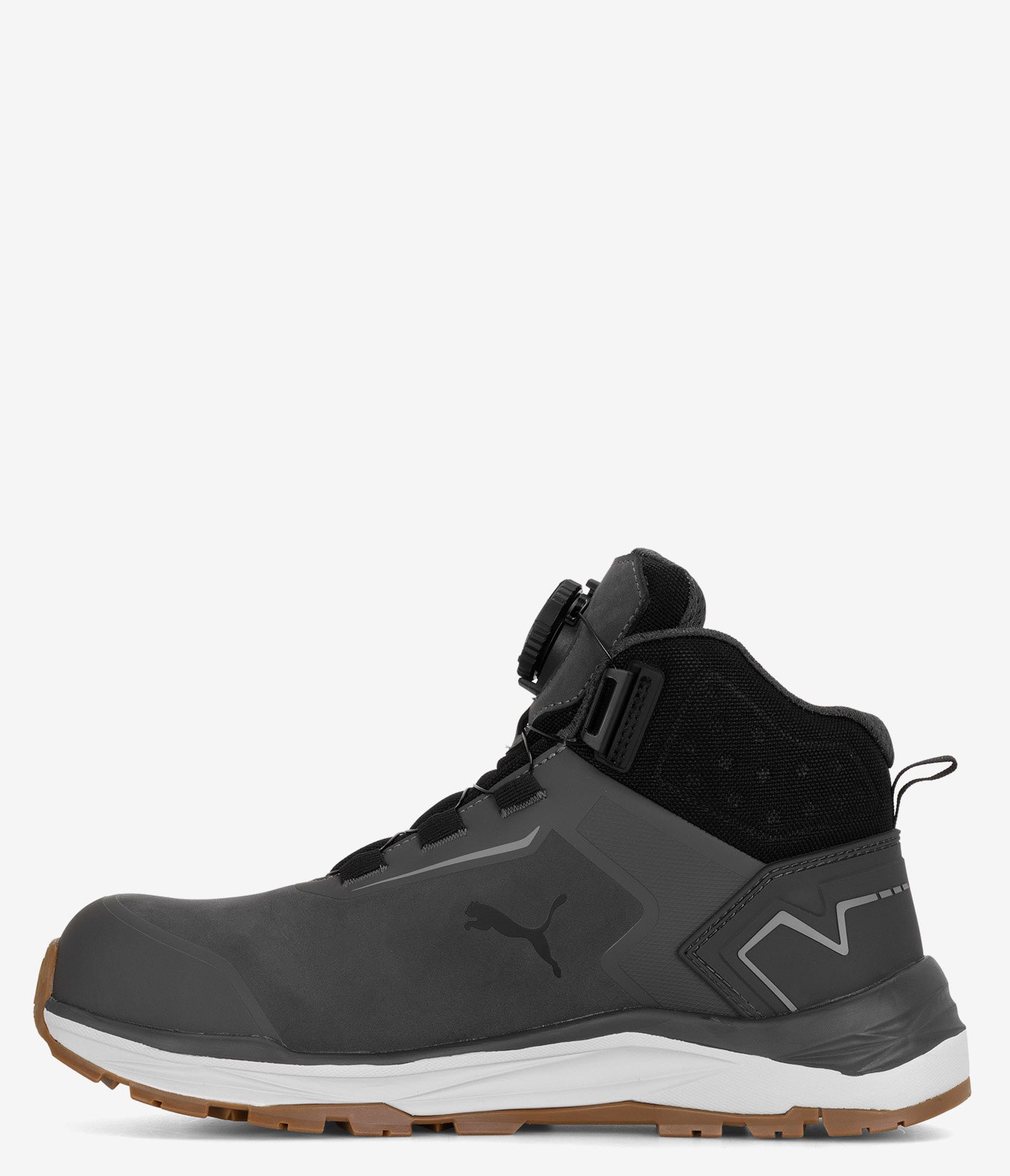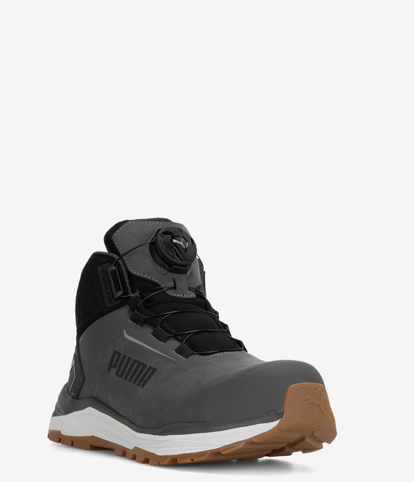 The PUMA Safety Fusion Mid Disc Composite Toe Work Shoe delivers rugged protection and a fast, dialed-in fit with its precision-engineered Disc lacing system.